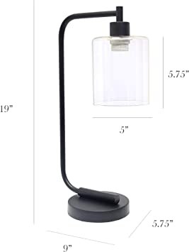 Simple Designs LD1036-BLK Black Bronze Vintage Style Industrial Iron Lamp Glass Shade Table Lamp